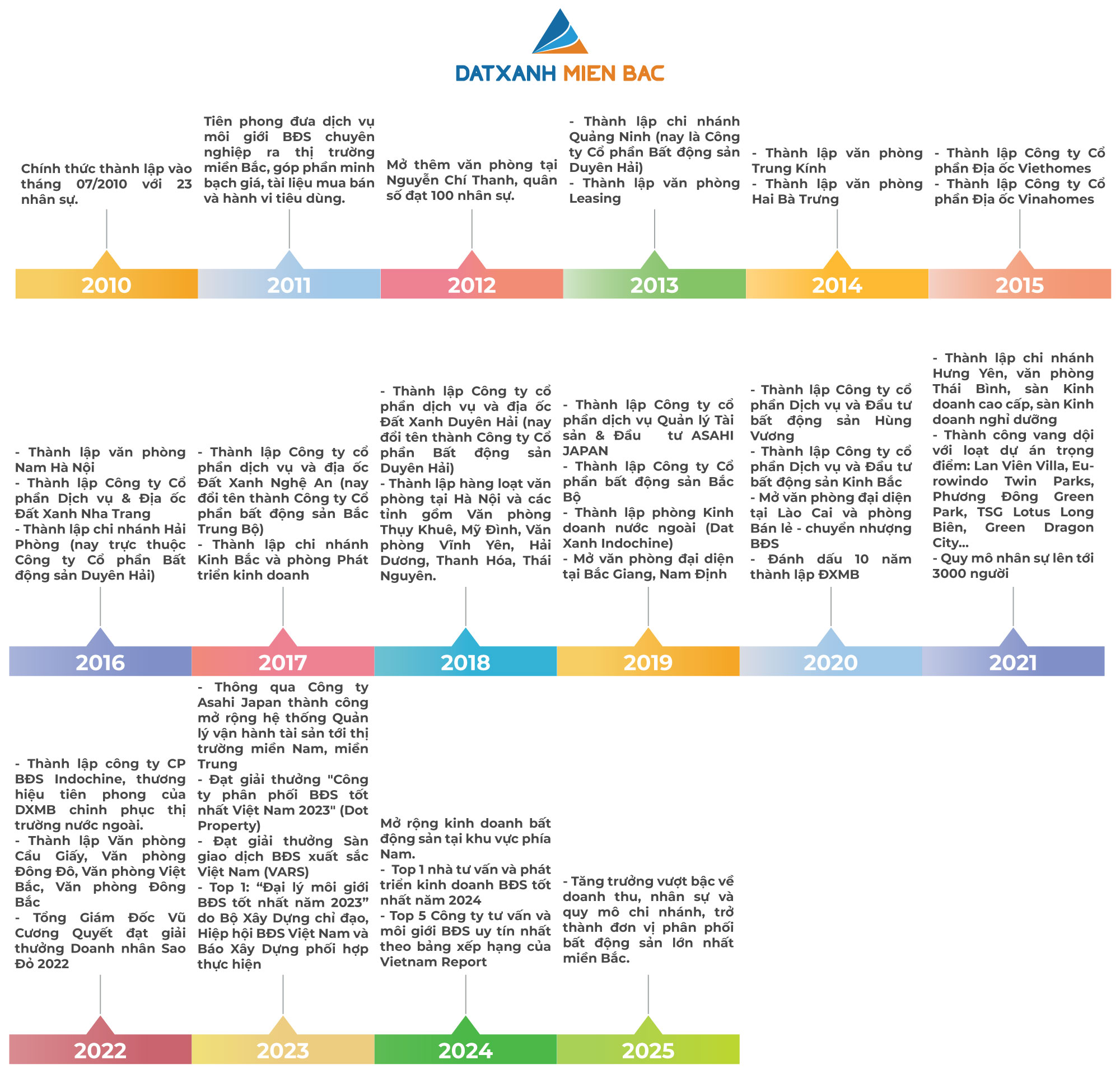 Trong quá trình hoạt động từ năm 2010 đến nay, Đất Xanh Miền Bắc đã tham gia phân phối & đầu tư thứ cấp hơn 2000 dự án trên khắp cả nước với đa dạng loại hình như: chung cư, nhà liền kề, nhà phố thương mại, biệt thự, đất nền; cho thuê văn phòng, mặt bằng thương mại, nhà ở… Cùng đó là chuỗi thương hiệu Nhà Ở Ngay cho phân khúc nhà lẻ, thổ cư. Bằng sự uy tín và chuyên nghiệp, Đất Xanh Miền Bắc tự hào giúp hàng trăm nghìn khách hàng lựa chọn được các sản phẩm bất động sản chất lượng, phù hợp với nhu cầu và có giá trị theo thời gian.